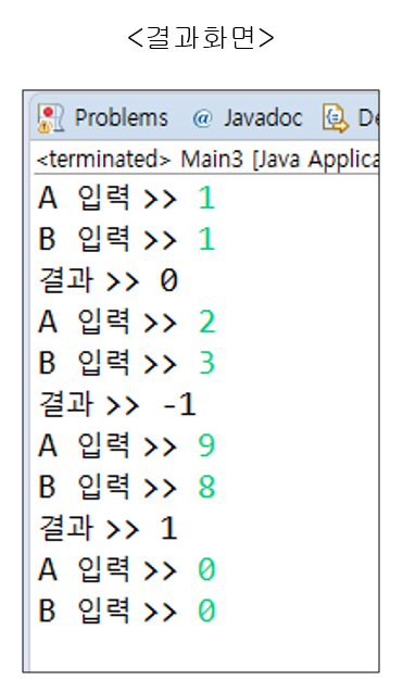 - A와 B가 모두 0을 입력 받으면 프로그램이 종료된다.