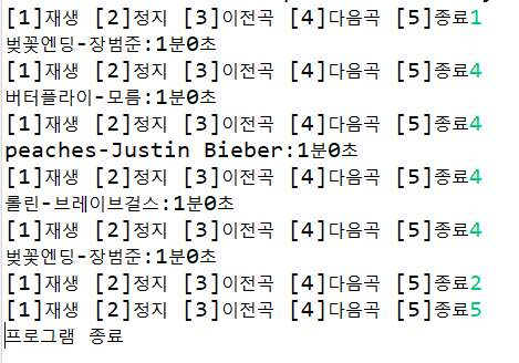 System.out.print("[1]재생 [2]정지 [3]이전곡 [4]다음곡 [5]종료");